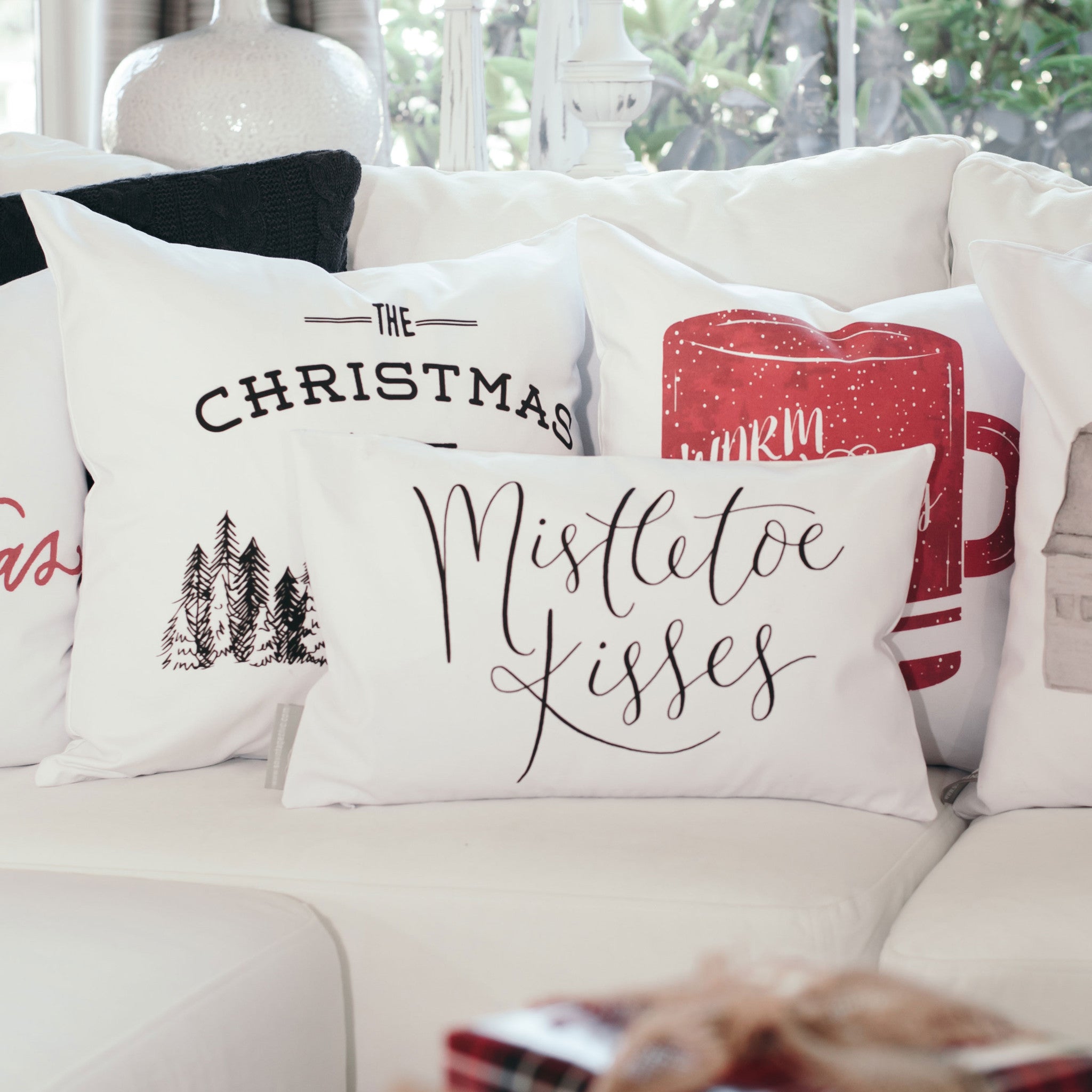 • Steal a mistletoe kiss and brag about it with a lovely scripted, printed pillow cover.