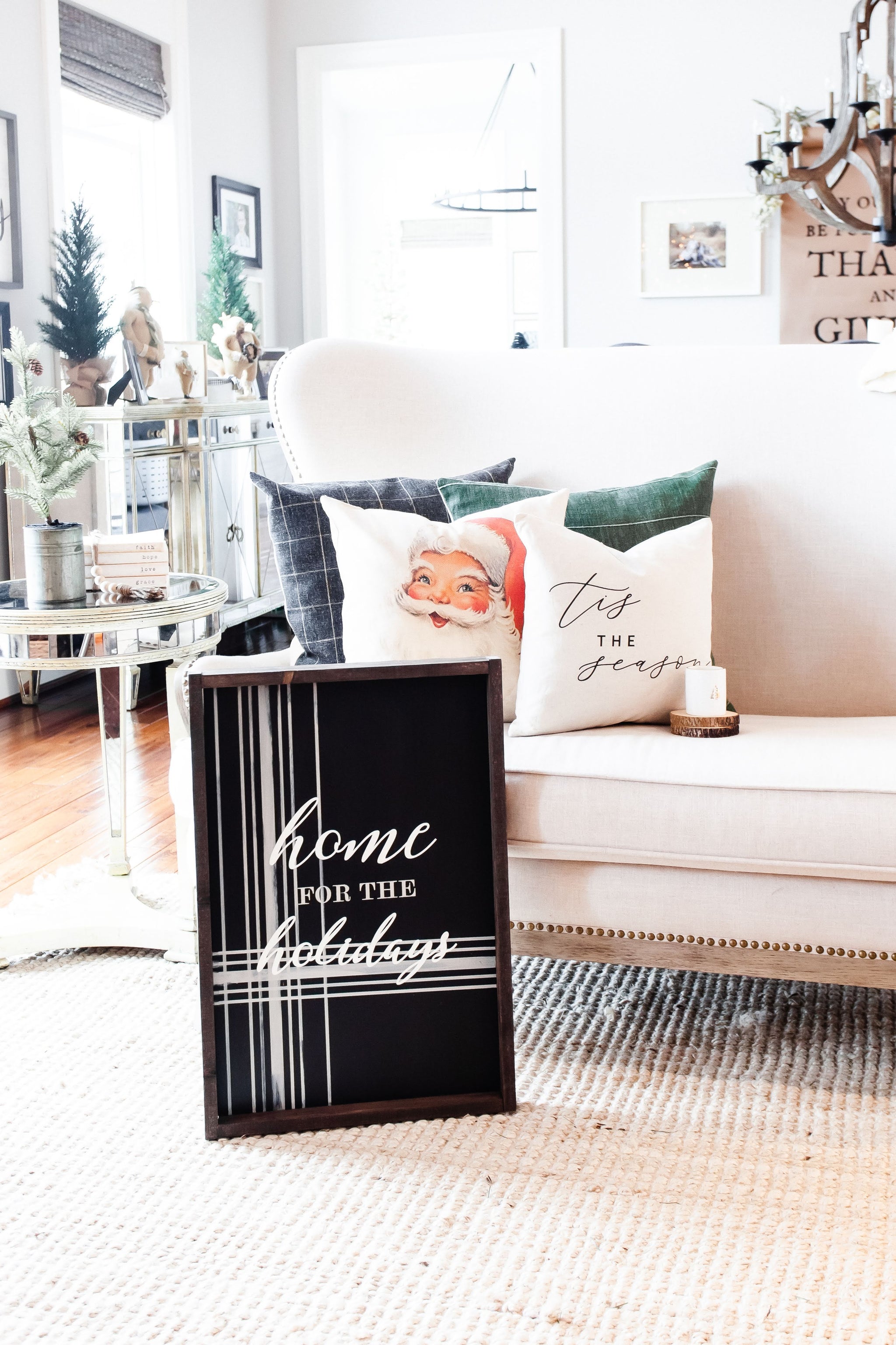 • Beautiful scripted lettering ushers in the winter season on the front of a farmhouse-inspired pillow cover.